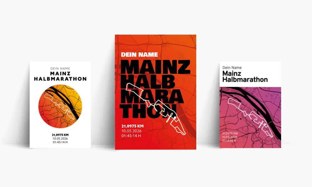 Jetzt den Mainz Halbmarathon als stylisches, personalisiertes Design-Poster konfigurieren. Erhältlich in verschiedenen Formaten, passend für jedes Zuhause. Jetzt schon ab 24,99 € erhältlich.*