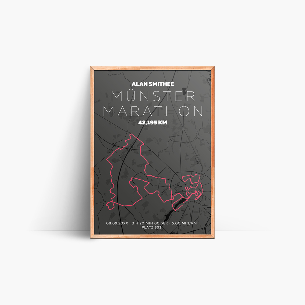 Jetzt den Münster Marathon als stylisches, personalisiertes Design-Poster konfigurieren. Jetzt schon ab 224,99 € erhältlich. (Preis abhängig vom gewählten Format)